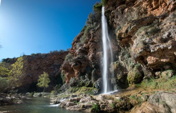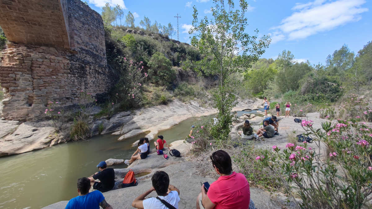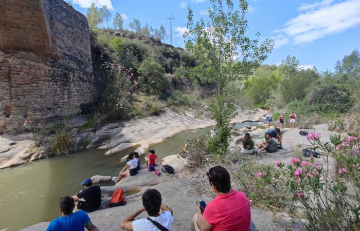 10:10 Breve dinámica de presentación, para romper el hielo e inicio de la ruta de senderismo, en la que visitaremos los lugares más importantes del pueblo y sus alrededores: el Olmo Centenario, la torre árabe de Altomira, la Vía Verde de Ojos Negros, el Pantano del Regajo y el Salto de la Novia. Pasaremos por varias zonas en las que podremos darnos un resfrescante baño (quien quiera).