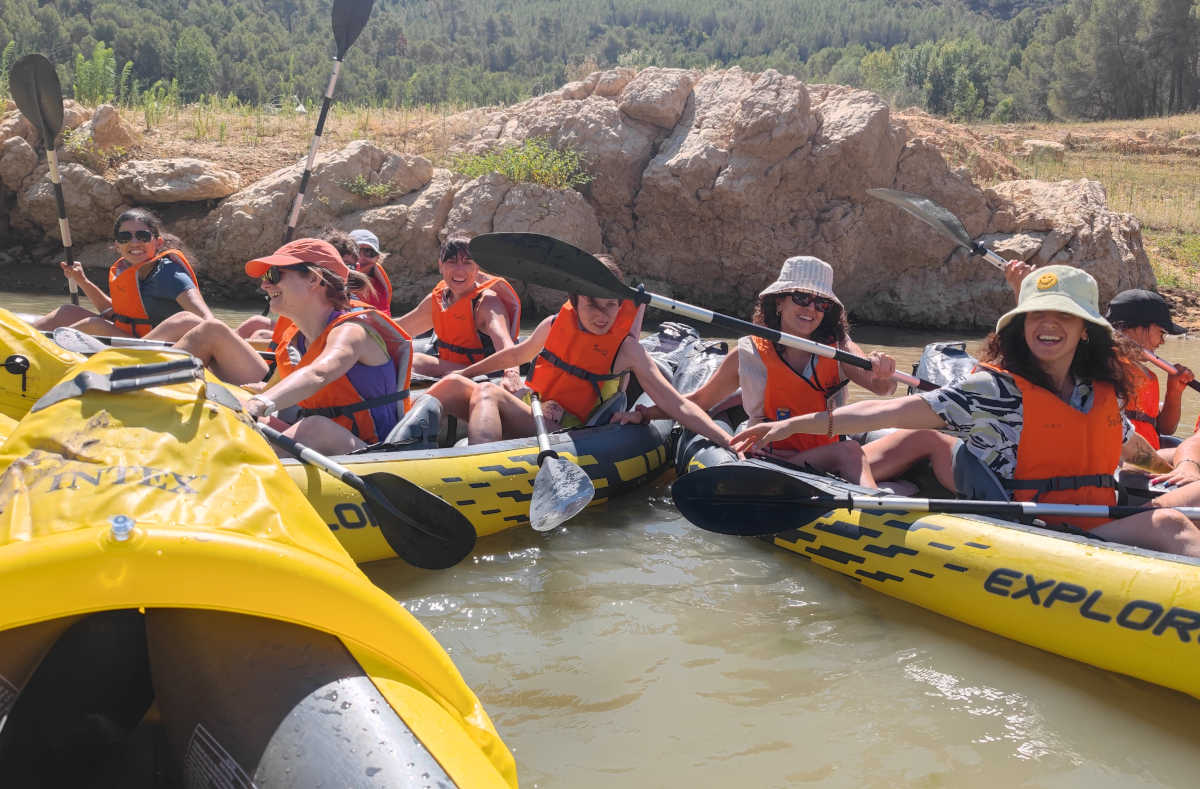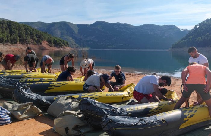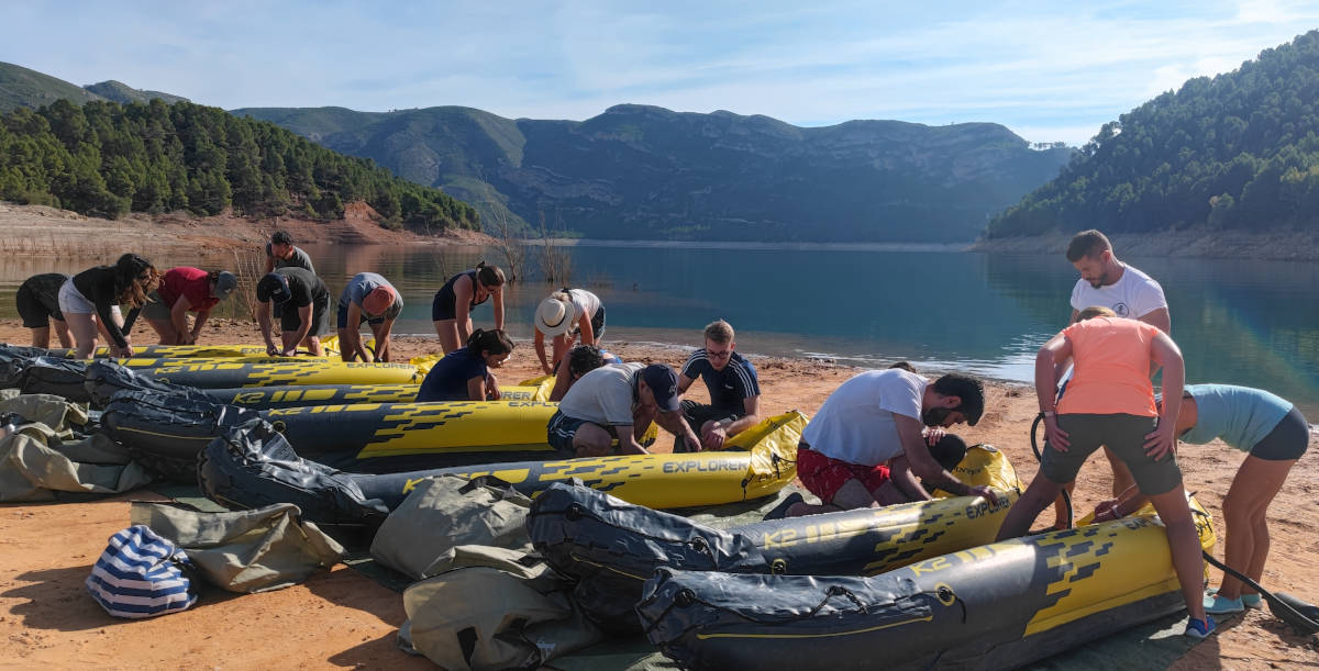 11:00 Por parejas, hinchar los kayaks, repartir remos, chalecos salvavidas y dar charla de seguridad.