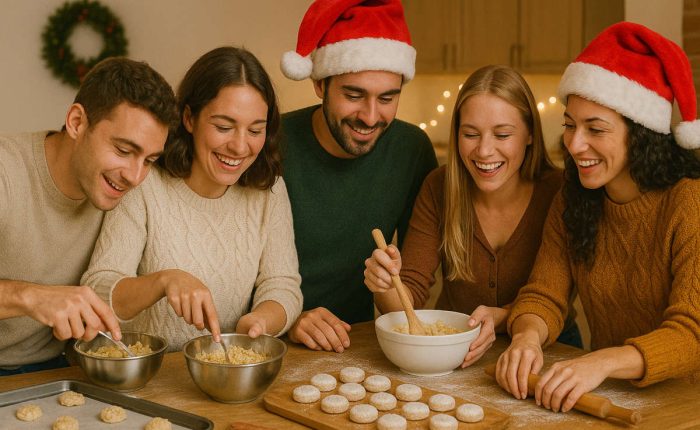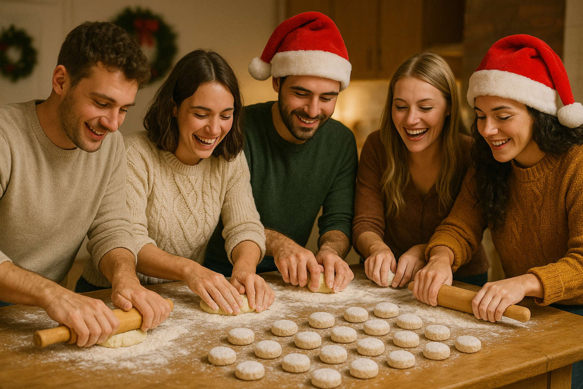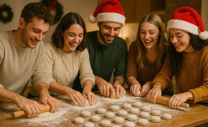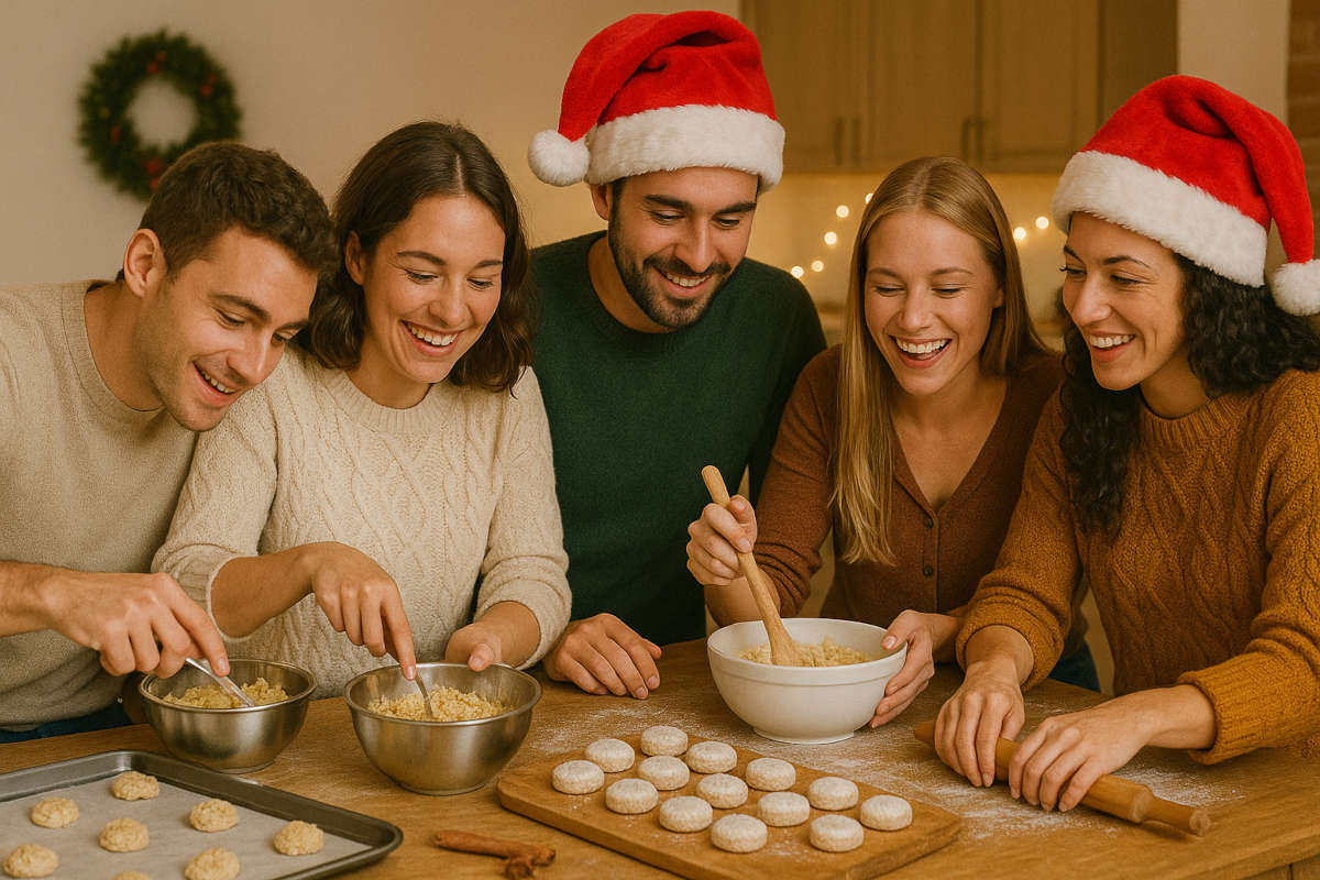 Es super fácil, tanto si eres todo un cocinillas, como si no has tocado una sartén en tu vida, tienes que venir a disfrutar de este planazo original, con gente de muy buen rollito y azúcar glas. Tostaremos harina y almendras, añadiremos el resto de ingredientes, amasaremos, haremos formas divertidas y hornearemos, todo ello acompañado de barra libre, lucecitas navideñas y música de fondo.
